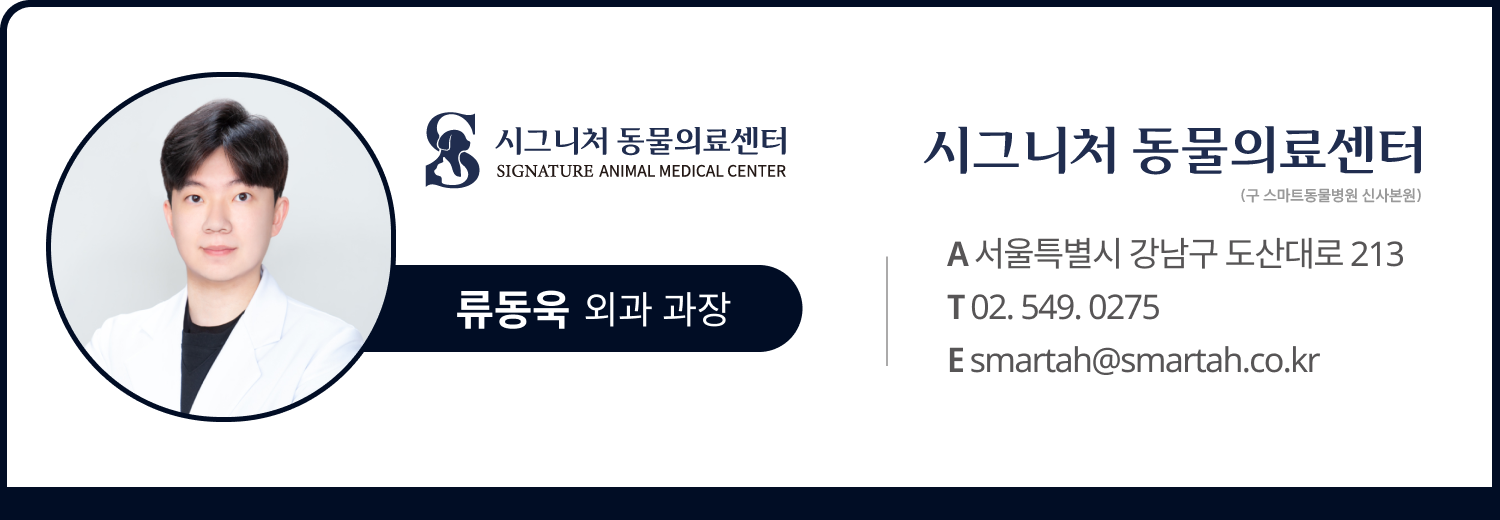 강아지 림프종 진단은 단순히 혹이 만져졌다고 바로 확진하는 과정이 아니며, 세침흡인검사 → 추가 병리검사 → 영상진단 → 병기 설정까지 이어지는 단계적인 평가가 필요합니다. 정확한 진단은 이후 항암 치료 반응과 예후에 큰 영향을 주기 때문에, 조기 발견과 구조적 진단 과정이 무엇보다 중요합니다. 림프절 변화나 식욕 감소, 무기력 등이 반복된다면 지체하지 말고 진료를 받는 것이 아이의 시간을 지키는 가장 중요한 선택입니다. 스마트동물병원 신사본원은 24시간 운영되는 동물병원으로, 정확하고 올바른 의료 서비스 제공을 위해 전문 의료진이 늘 최선을 다해 노력합니다. 강아지, 고양이 건강 관련 문의나 내원 예약은 병원 대표번호 및 카카오톡을 통해 부탁드리겠습니다. 감사합니다.